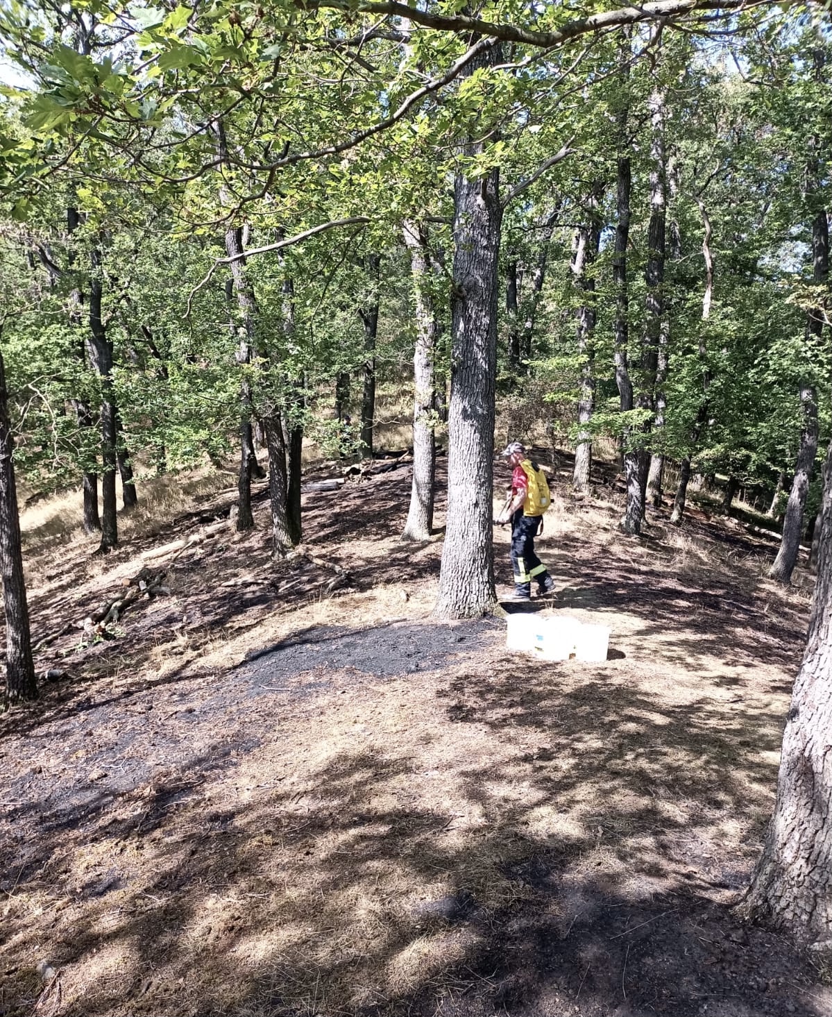 Die Feuerwehr Thale wurde am Dienstagmorgen zu Nachlöscharbeiten des Waldbrandes alarmiert, da vereinzelte Stellen wieder anfingen zu brennen.