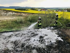 Zudem wurde die Bodenfläche mit Handwerkzeug aufgelockert, um Glutnester freizulegen und abzulöschen.
