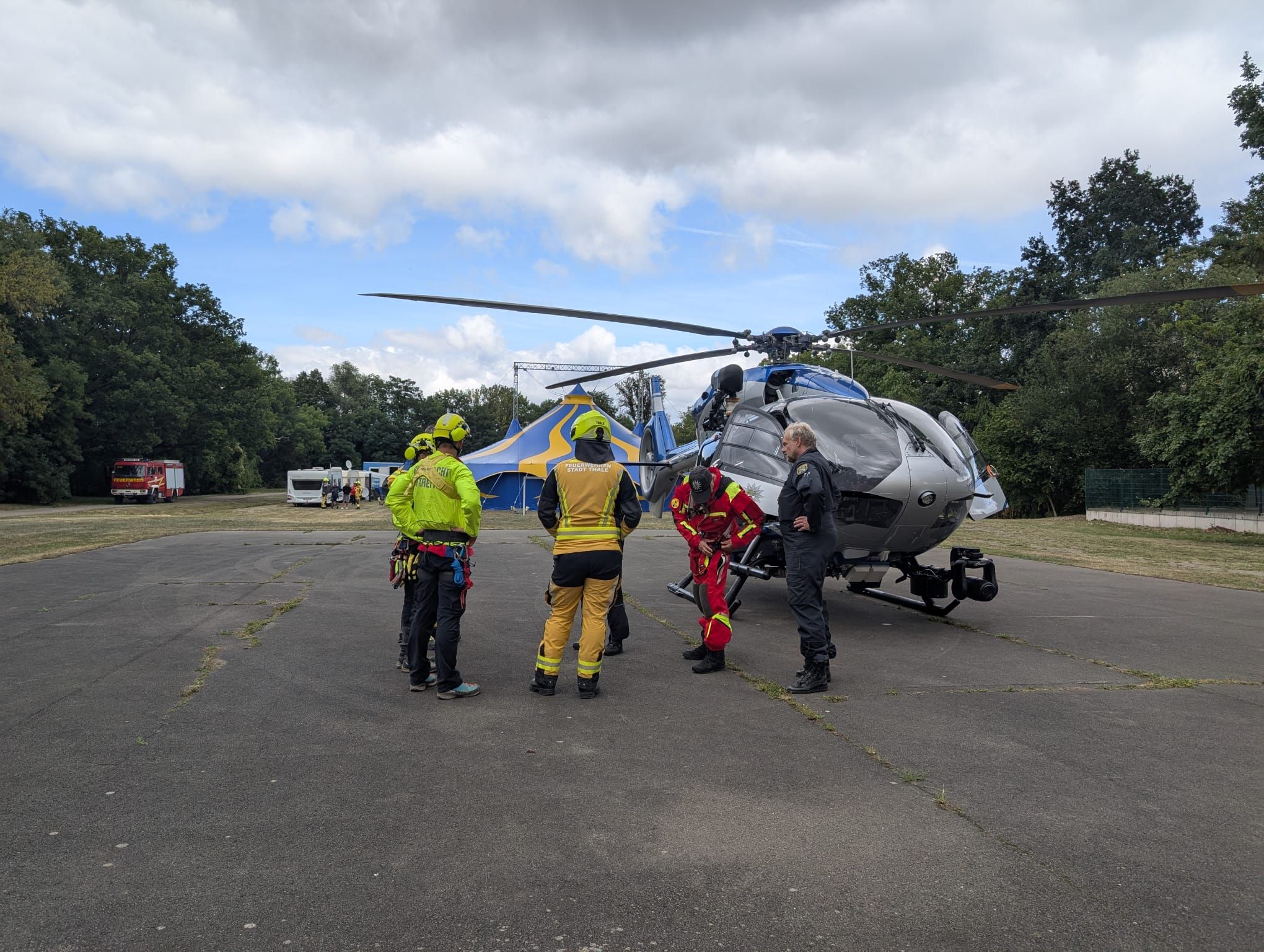 Am Sonntagnachmittag wurde die Ortsfeuerwehr Thale, gemeinsam mit dem Rettungsdienst und der Bergwacht zu einer Person in Notlage in das Bodetal alarmiert. Eine Person war im Bereich der Schurre gestürzt. Die erst eintreffende Bergwacht entschied, dass die Person mithilfe eines Polizeihubschraubers gerettet werden soll. Daraufhin konnte die Feuerwehr ihren Einsatz im Bodetal abbrechen und richtete den Landeplatz auf dem Pfingstanger ein. Da dort derzeit ein Mitmach-Zirkus zu Gast ist, wurden die dortigen Besitzer vorsorglich informiert. Hier gab es während der Landung aber keinerlei Vorkommnisse.