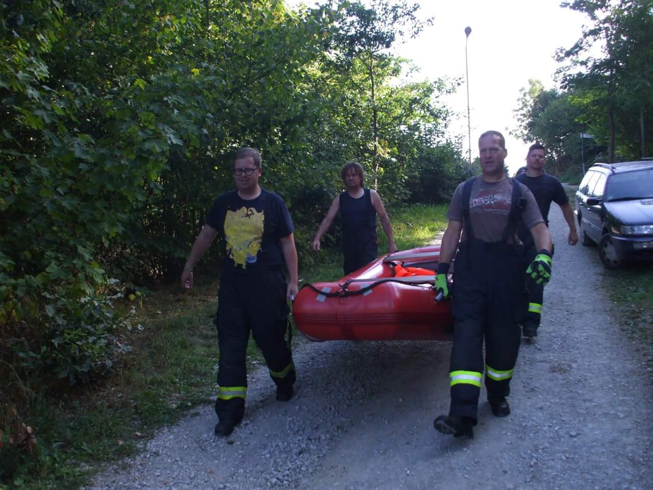 Wir fuhren die Einsatzstelle mit Löschgruppenfahrzeug (LF 20 Altenbrak), Tragkraftspritzenfahrzeug (TSF-W Treseburg) und dem Altenbraker Mannschaftstransportwagen an, der unser Schlauchboot im Anhänger nachführte. Nach einer kurzen Absprache mit den Hasselfelder Kameraden brachten wir gemeinsam unsere beiden Schlauchboote zu Wasser, um die leblose Person zusammen wieder ans Ufer zu bringen, da der Leichnam an einer vom festen Boden aus schwer zugänglichen Stelle trieb. Deswegen mussten wir den Stausee mit den Booten in voller Breite überqueren.