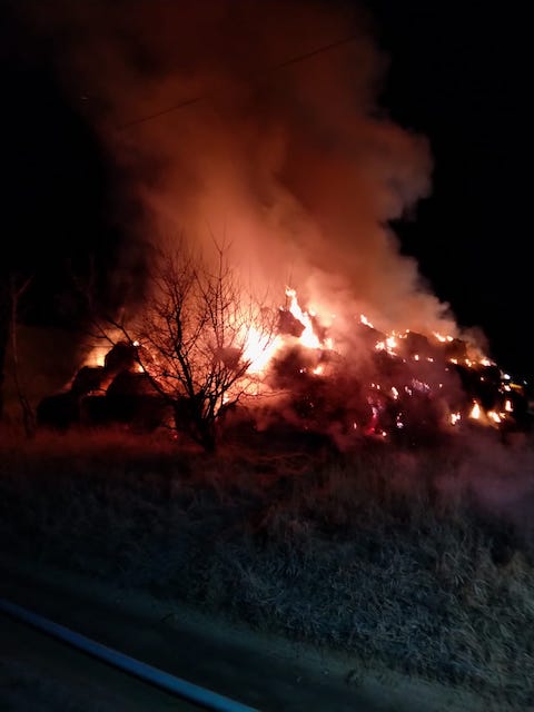 Der Großteil der brennenden Strohballen muss kontrolliert abbrennen, ein Ablöschen ist in diesem Fall nicht möglich.