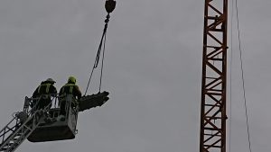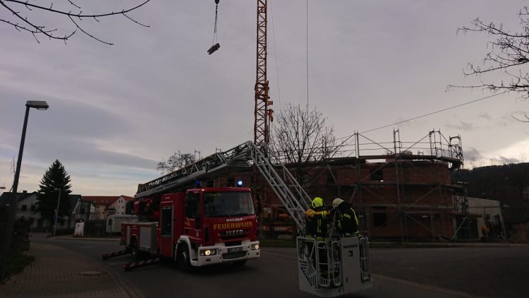 Besorgte Anwohner meldeten lose Leiterteile an einem Baukran auf einer Baustelle.
