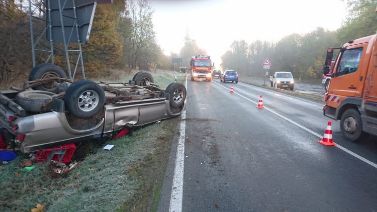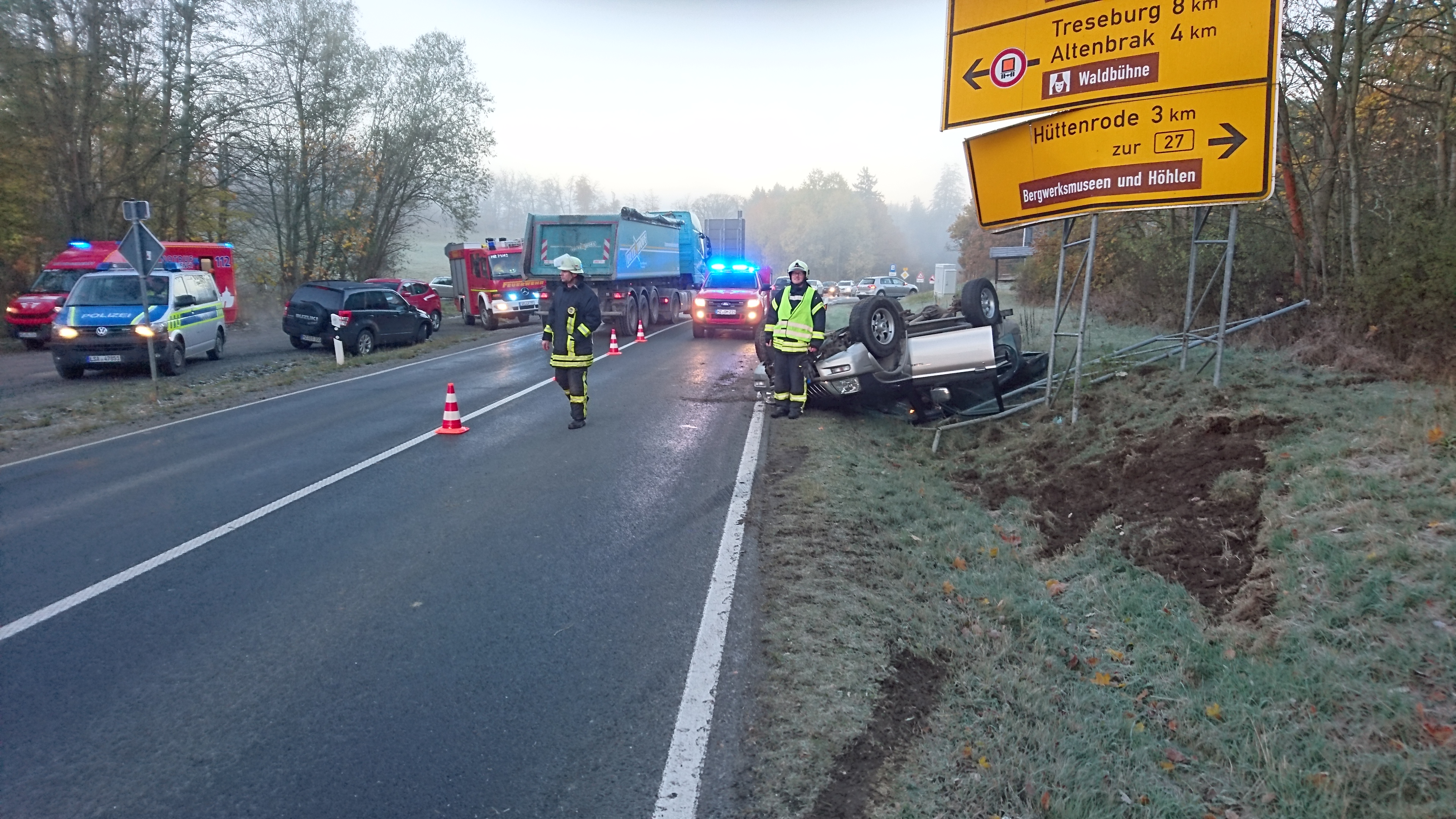 In den Morgenstunden ereignete sich auf der B 81, in Höhe des Abzweiges nach Almsfeld, ein Verkehrsunfall. Ein Pkw war von der Fahrbahn abgekommen und hatte sich überschlagen. Die Eingangsmeldung signalisierte noch, dass sich vermutlich eine Person im Fahrzeug befinden soll. Beim Eintreffen der Einsatzkräfte der Feuerwehr war diese Person bereits aus dem Fahrzeug und dem Rettungsdienst zur weiteren Versorgung übergeben.