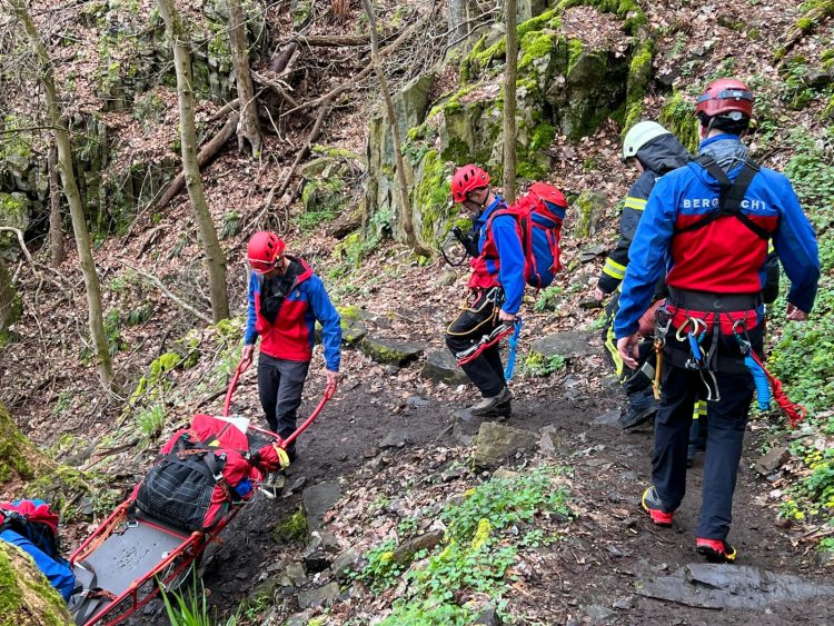 Nach einer Erstversorgung wurde diese gemeinsam mittels Gebirgstrage der Bergwacht nach oben auf den Hexentanzplatz getragen. Dort konnte die Person an den Rettungsdienst übergeben und der Einsatz beendet werden.