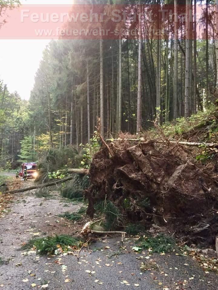 Infolge der Unwetterlage über unserer Region kam es im Stadtgebiet Thale zu 30 Einsätzen der einzelnen Ortsfeuerwehren. Die erste Alarmierung kam über die ILS Harz bereits um 05.49 Uhr, hier waren bereits mehrere Bäume zwischen Thale und Friedrichsbrunn umgestürzt und versperrten die Landstraße 240.