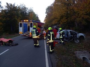 Die Ortsfeuerwehr Allrode wurde am Sonntagabend gemeinsam mit dem Rettungsdienst aus Thale zu einem Verkehrsunfall auf der L95 zwischen Allrode und Stiege alarmiert.