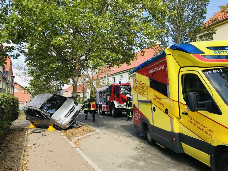 Am Dienstagnachmittag wurde die Ortsfeuerwehr Thale zu einem Verkehrsunfall im Obersteigerweg alarmiert. Vor Ort war ein Pkw mit zwei Insassen alleinbeteiligt von der Fahrbahn abgekommen und mit einem Baum kollidiert.
