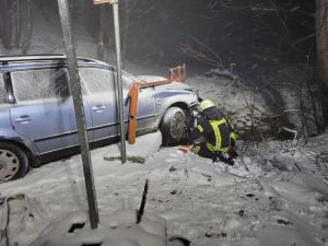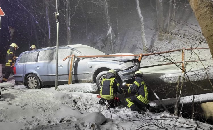 Auf der L240 zwischen Thale und Friedrichsbrunn war ein PKW auf Höhe der Einfahrt zum Bergtheater bei Neuschnee von der Straße abgekommen und gegen ein Brückengeländer gefahren.
