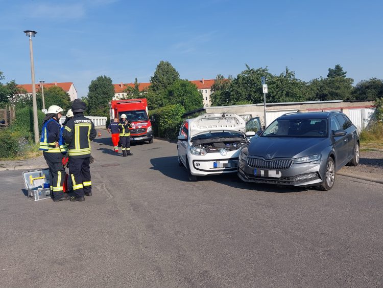 Zwei PKW waren miteinander kollidiert. Die betroffenen Personen wurden durch den Rettungsdienst betreut.