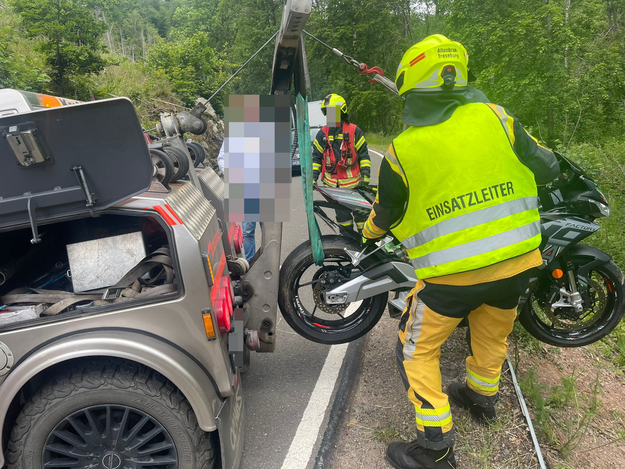 Nach der Bergung des Motorrads konnte die Einsatzstelle an die Polizei übergeben und die Einsatzbereitschaft wiederhergestellt werden.