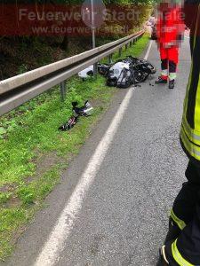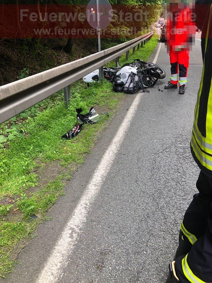 Durch die Kameraden wurde die Einsatzstelle abgesichert, Betriebsstoffe abgebunden, beim Abtransport des Motorrad unterstützt, Trümmer beseitigt und abschließend wurde die Unfallstelle an die Polizei übergeben.