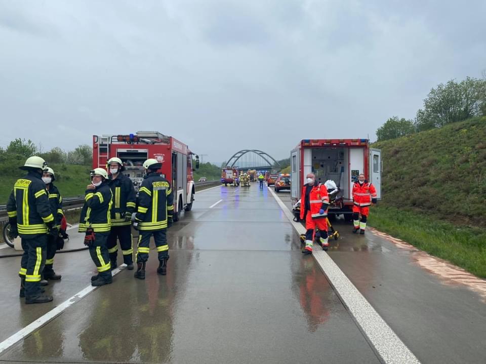Vor Ort kollidierten zwei PKW, ein PKW befand sich im Graben, ein PKW auf der Mittelleitplanke. Die verletzten Personen wurden bereits durch den ersteintreffenden Rettungsdienst versorgt.