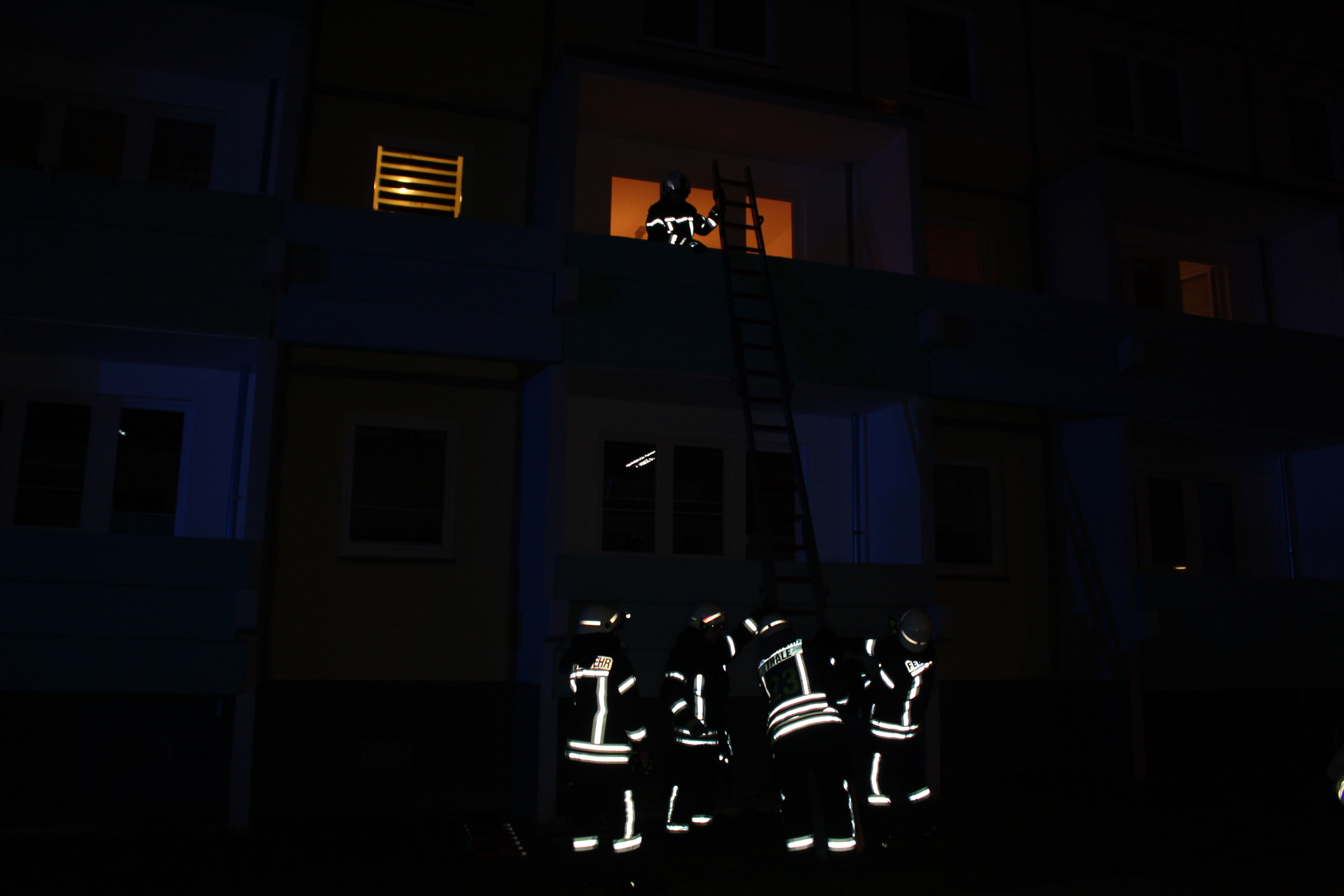 Mit dem Eintreffen weiterer Kameraden und damit auch weiterer Atemschutzgeräteträger wurden mehrere Trupps unter Atemschutz ins Gebäude geschickt, der Auftrag war die Rettung und Evakuierung der Anwohner aus den Wohnungen. Auch über die eingetroffene zweite Drehleiter der Feuerwehr Blankenburg und über die Steckleiter wurden Personen von Ihrem Balkon in Sicherheit gebracht.