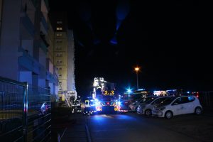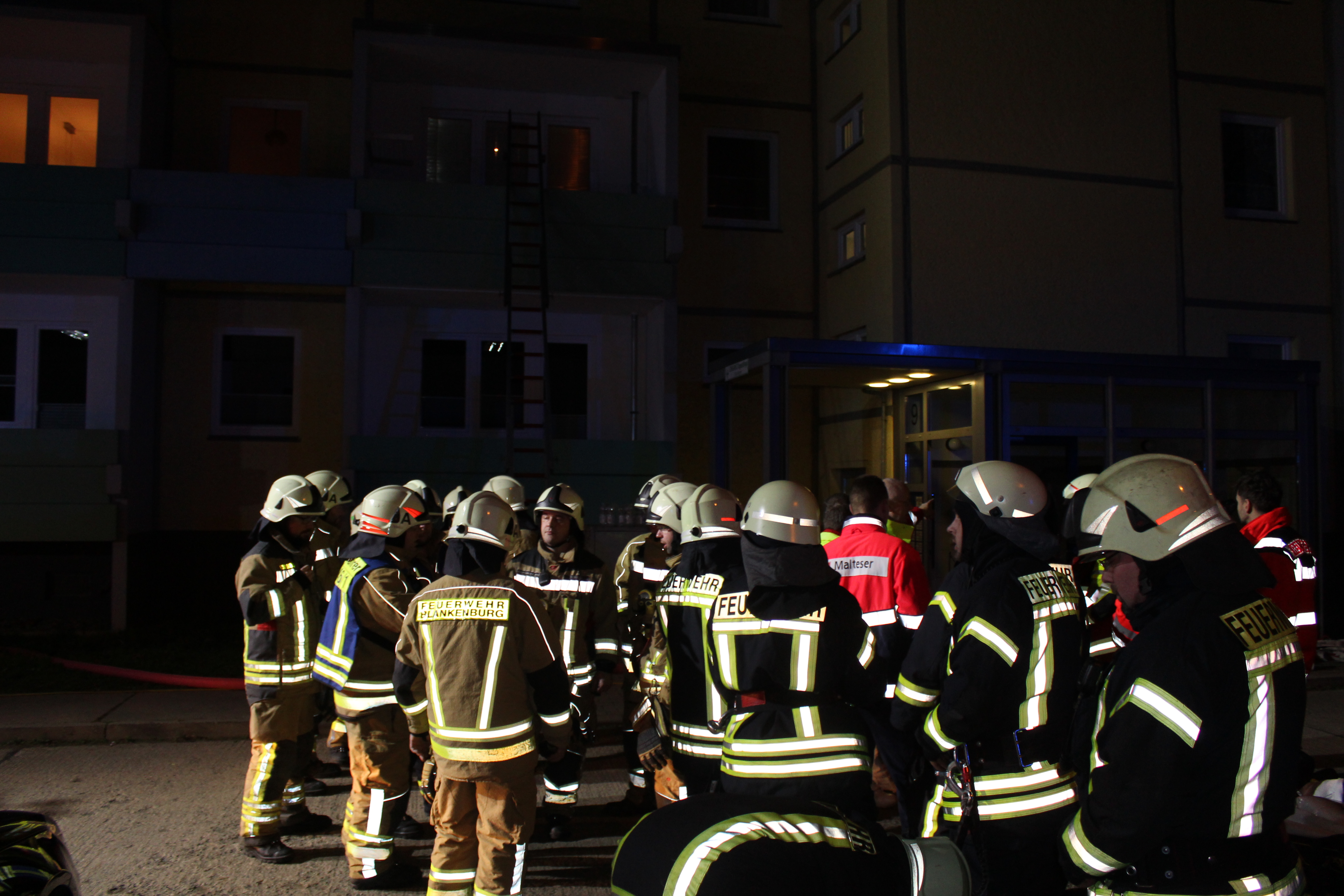 Beim Eintreffen der ersten Kameraden war bereits auf der Rückseite des Gebäudes ein Feuerschein auf einem Balkon sichtbar, das Treppenhaus war stark verraucht und zahlreiche Bewohner waren noch in Ihren Wohnungen. Aufgrund der bestätigten und vorgefundenen Lage wurde das Alarmstichwort erhöht und es wurde die Feuerwehr Blankenburg sowie die MANV-2-Stufe (Massenanfall von Verletzten) mit zahlreichen Rettungsmitteln nachalarmiert.